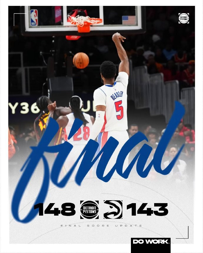活塞和老鹰今天展开对轰大战,双方得分都超过了140分。活塞这边三分球40中20分,其中康宁汉姆三分10中7,小哈达威三分10中6,比斯利三分10中6,这也是活塞队史首次有3名球员在同一场比赛中都投进5+三分。